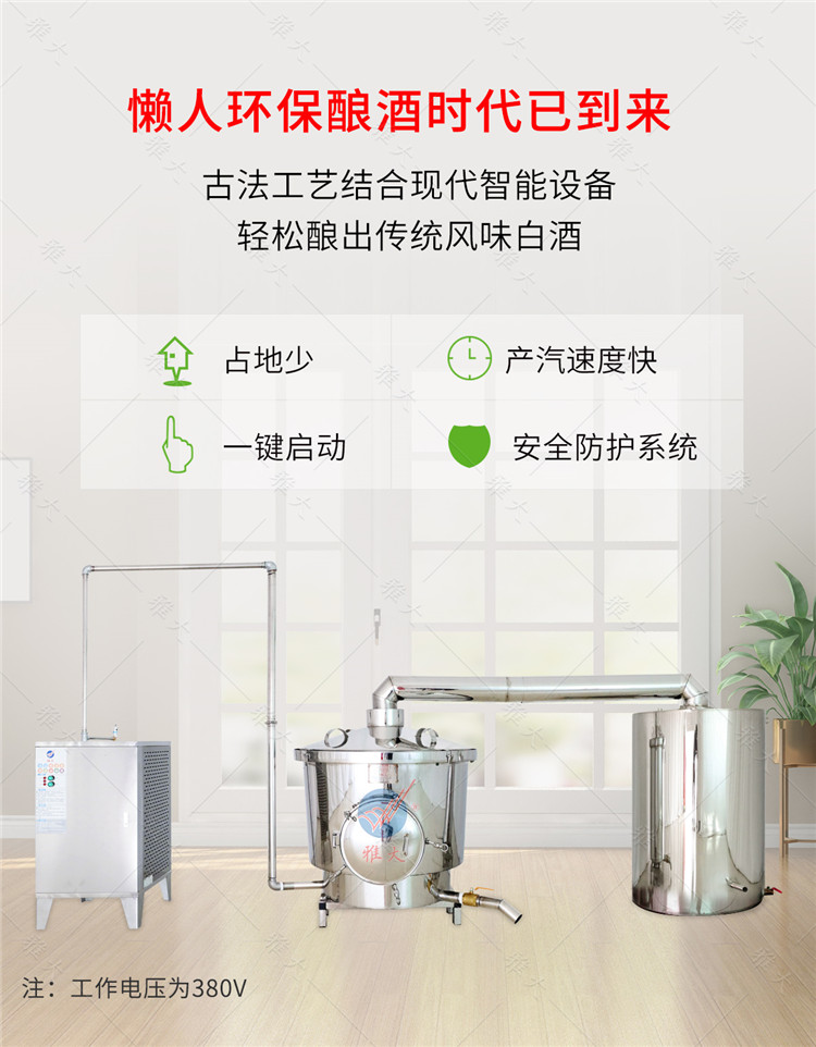 粉色视频网站新型第九代升級版電加熱釀酒設備全不鏽鋼機身,安全、衛生、高效、環保、占地麵積小,出酒率高,酒質好,該設備使用380V三相交流電,電源線為5線製,可滿足不同釀酒者的釀酒需求。